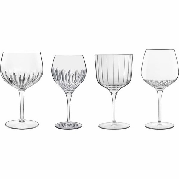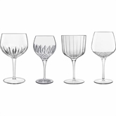 Med dette lækre sæt får du fire unikke ginglas på stilk fra fire forskellige Luigi Bormioli serier, hvilket giver dig mulighed for en opsigtsvækkende og elegant bordopdækning eller servering i hjemmebaren. Glassene i de forskellige designs fremtræder med masser af spil i form af forskellige mønstre og strukturer.