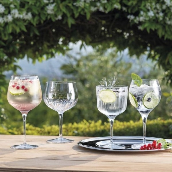 Særdeles elegant og eksklusivt Gin & Tonic gavesæt med fire ginglas fra den anerkendte, italienske glasproducent Bormioli Rocco.