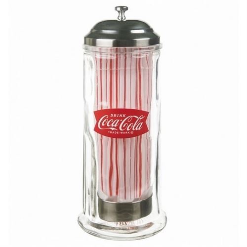 Her får du den fedeste sugerørsholder i topkvalitet fra vores unikke Coca-Cola retro-serie. Særdeles robust udført i kraftigt glas og metal med retro "Drink Coca-Cola" logo. Når du løfter det flotte chrome låg, følger sugerørene med op, således at man let kan snuppe et plastsugerør til sin iskolde Coca-Cola.