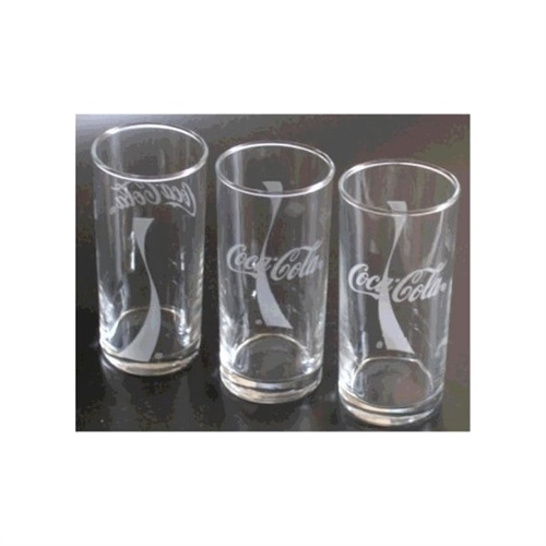 Coca-Cola tumbler glas i en klar udgave med Coca Cola logoet på fronten og den legendariske bølge på bagsiden.