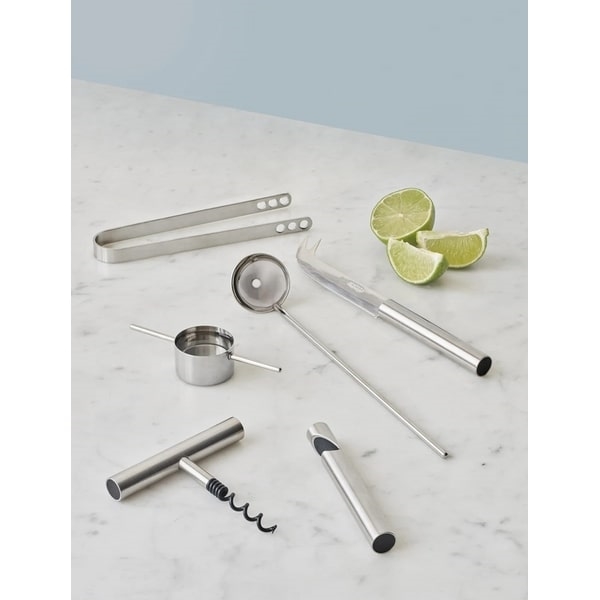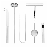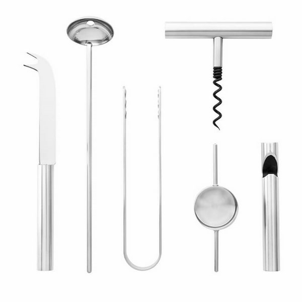 Super elegant barsæt fra Stelton med 6 dele. Designet af selveste Arne Jacobsen og Peter Holmblad må disse klassiske barredskaber siges at være et stykke dansk design-historie, som udstråler både kvalitet og nostalgi.